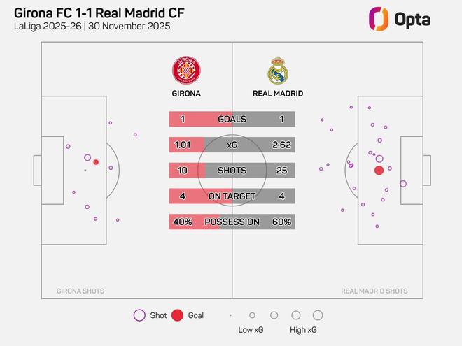 皇马本场25次射门,为本赛季西甲比赛没赢球球队中射门第二多